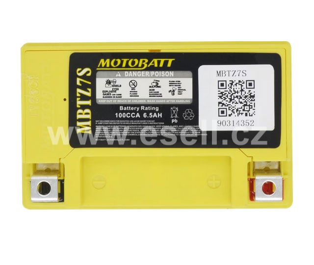 Baterie MOTOBATT MBTZ7S, 12V, 6,5Ah, 100A Baterie MOTOBATT jsou prémiové motobaterie s velkou výdrží vyrobené v USA. Vysoce odolná díky separátoru ze skelného rouna. Doménou značky MOTOBATT je konstrukční technologie QuadFlex, která poskytuje velkou...