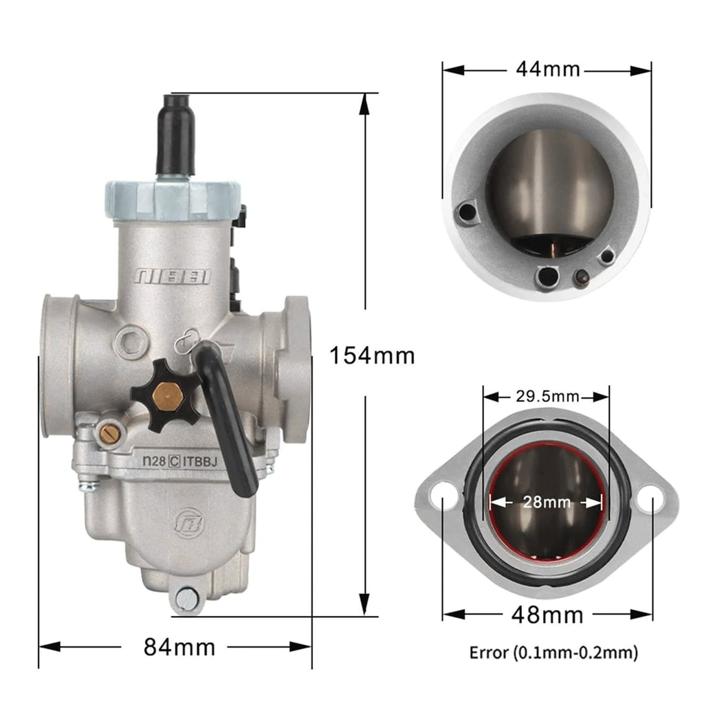 je speciálně navržený pro přírubové připojení u větších sání. Venturiho tryska má lepší proudění vzduchu než jiné karburátory stejného typu a proto je výkonnější. Proti originálnímu karburátor mají lepší odezvu plynu. Pro dosažení nejlepších výsledků doporučujeme zakoupit také vzduchový filtr NIBBI RACING. Přístupné nastavení volnoběhu a směsi. Součástí balení je sada trysek