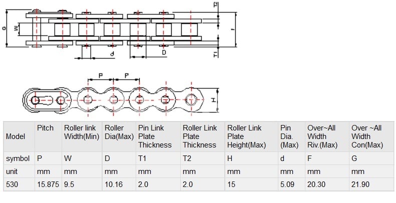 Řetěz 530 108 článků (viz. nákres v detailu)