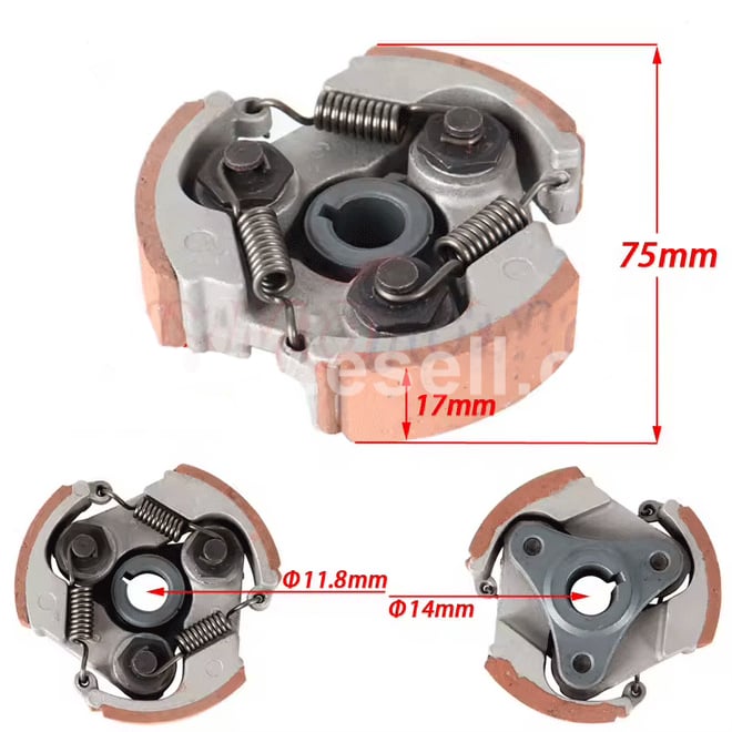 Spojka minibike, minicross a dětské čtyřkolky 49cc Kompletní 3-paknová spojka pro dvoutaktní motory 49cc. Ocelová spojka je těžší a zabírá lépe než hliníková