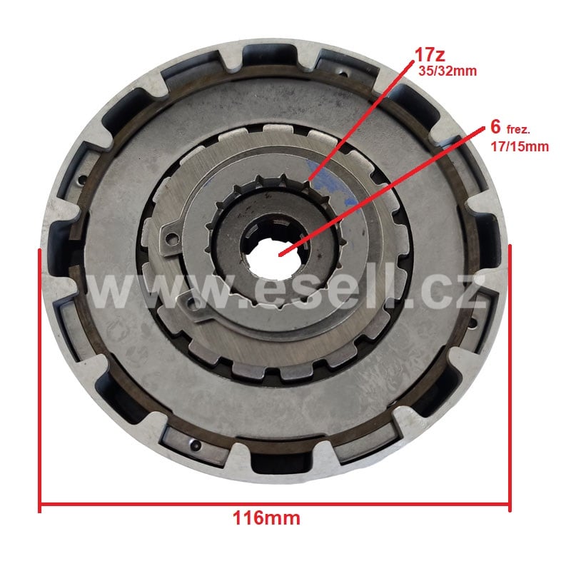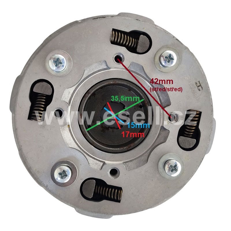 Spojka čtyřkolky, cross, pitbike a dětské čtyřkolky 110cc a 125cc Stred 17/15mm, 17 zubů
