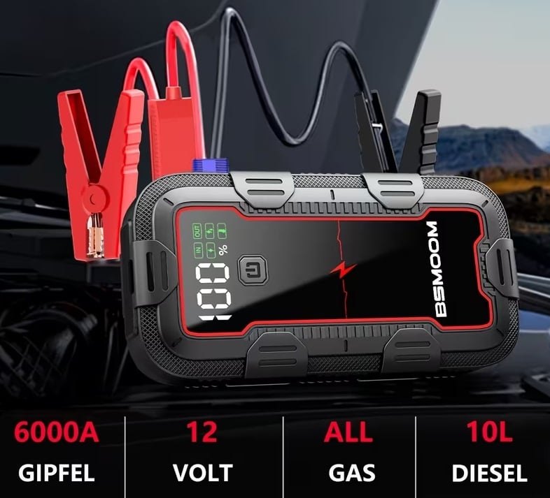 Startovací zdroj 26800 mAh, s Powerbankou a LED světlem Powerbanka nabízí dva inteligentní USB výstupní porty, včetně 18W Quick Charge portu, který vám umožňuje rychle a bezpečně nabíjet svůj smartphone a tablet současně. Bateriový startér obsahuje...
