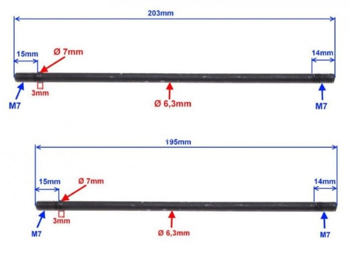 Štefty válce motoru M7, délka 195 a 203 mm