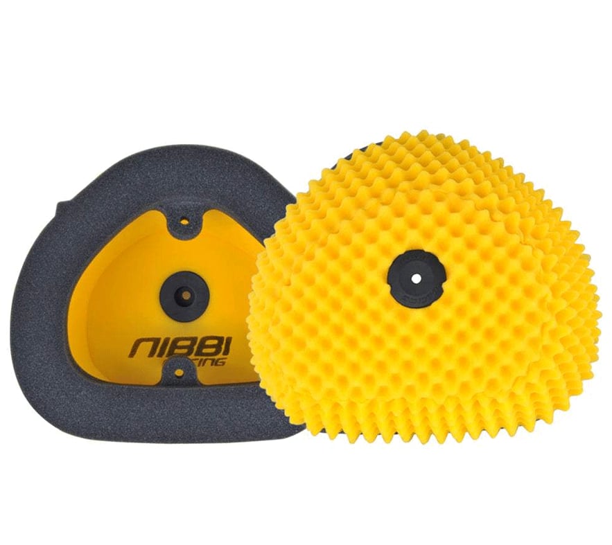 vzduchový filtr Nibbi je vyroben z polyuretanové pěny s mnoha kuželovitými výřezy na povrchu pro maximalizaci vnější plochy, která je dvojnásobná oproti běžnému filtru. Větší šance na zachycení prachu, písku a nečistot zajišťuje optimální proudění vzduchu, a tím maximalizuje výkon a spolehlivost motoru.