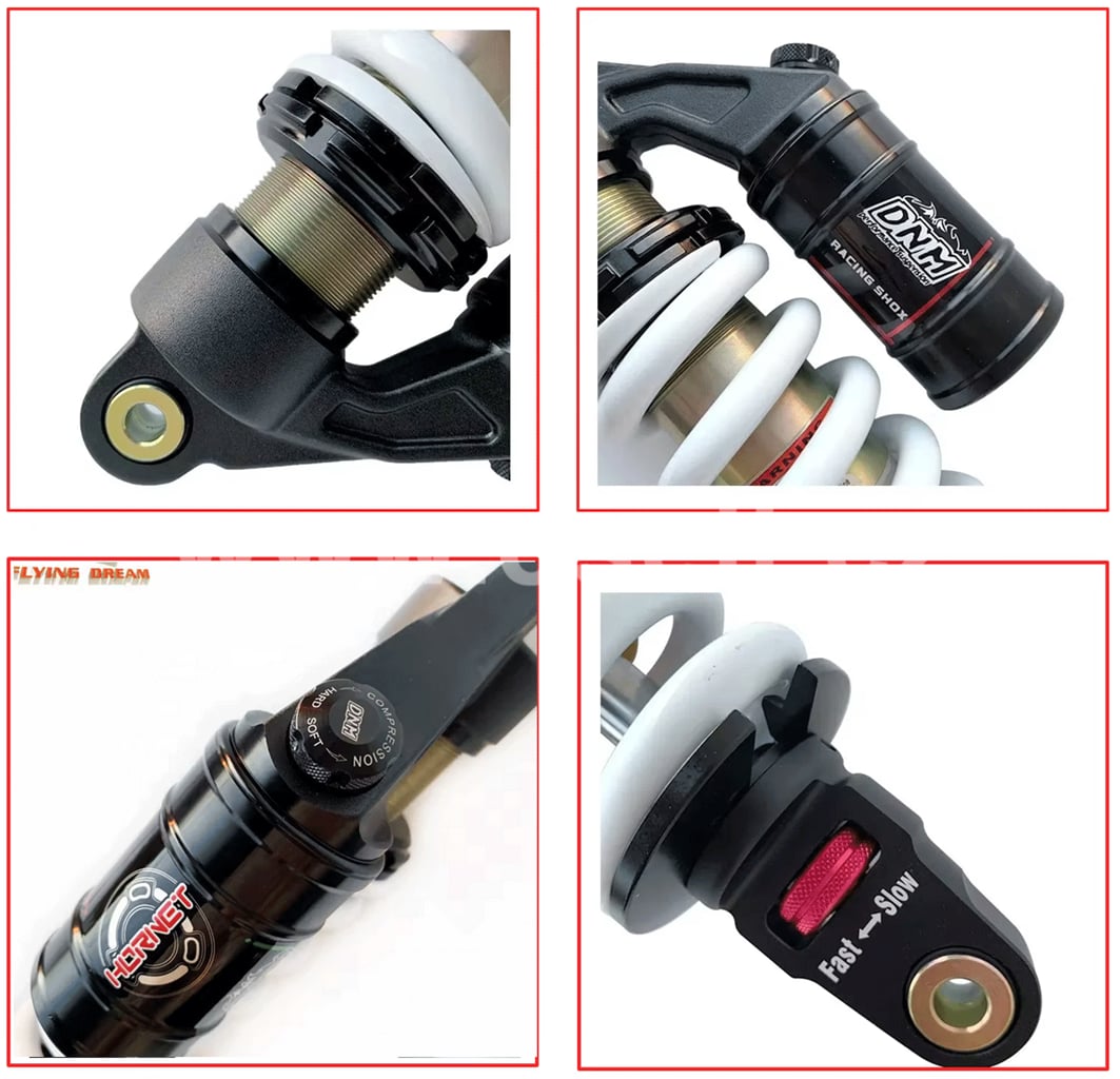 patří ke špičce v dané cenové kategorii. Tlumiče od ověřeného výrobce DNM snesou daleko větší zátěž, než standardní tlumiče. Používají se nejčastěji k závodním účelům a pro náročnější uživatelé pitbike. Tlumič je plně nastavitelný.